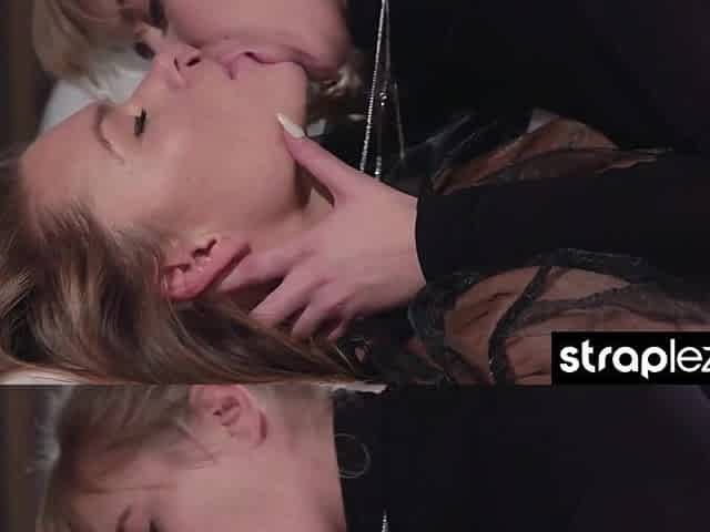 Watch this sexy blonde take her girlfriend s strapless dick