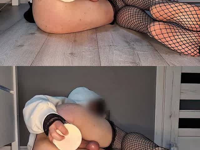 Large butt femboy plays with his aperture