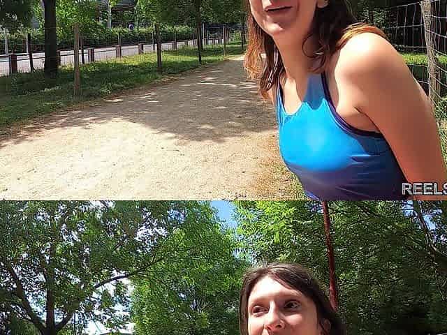 Chubby German girl with big ass fucked publicly on the street in POV