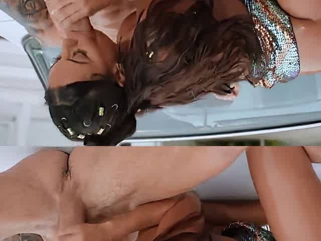 Spontaneous street encounter leads to hot and wild drive-through action!