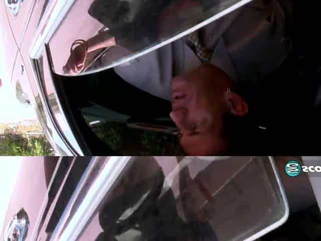The traffic light saleswoman is enticed and gets on the car