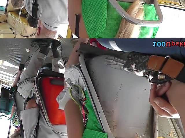Bus upskirt vid with lengthy-haired babe
