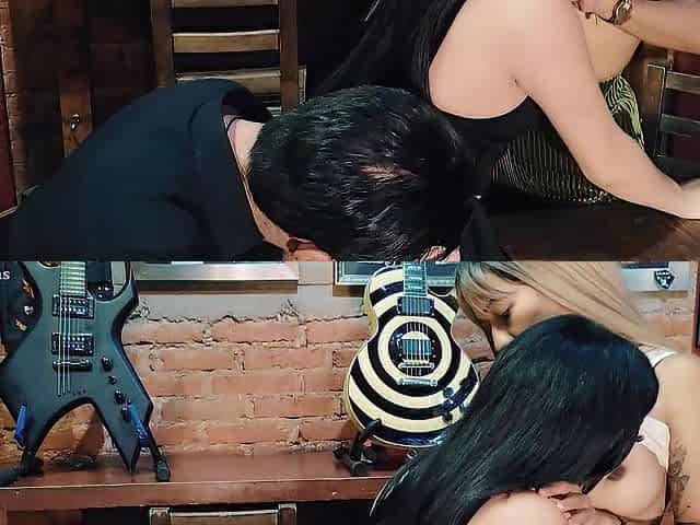 Public 3some oral sex