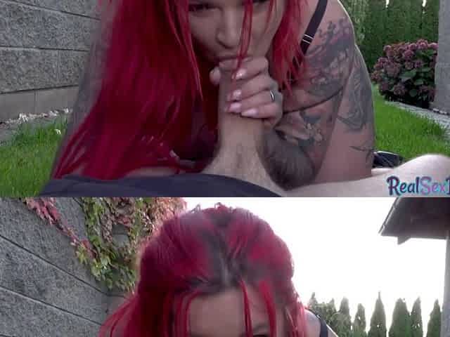 Street redhead MILF fucked in POV by fake agent outdoor
