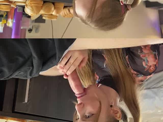 Sex on the street and sperm walk with blonde
