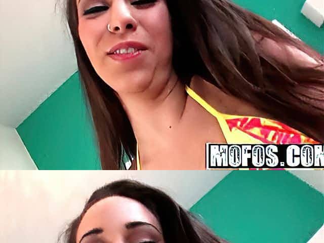 Breasty aged brunette hair in a string bikini is sucking a emo hard weenie in a POV style