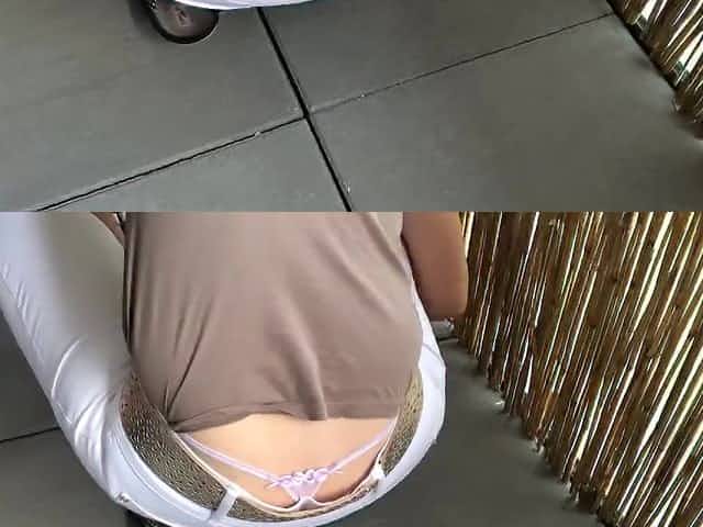 G-string panty of a hot lady seen in free upskirt video