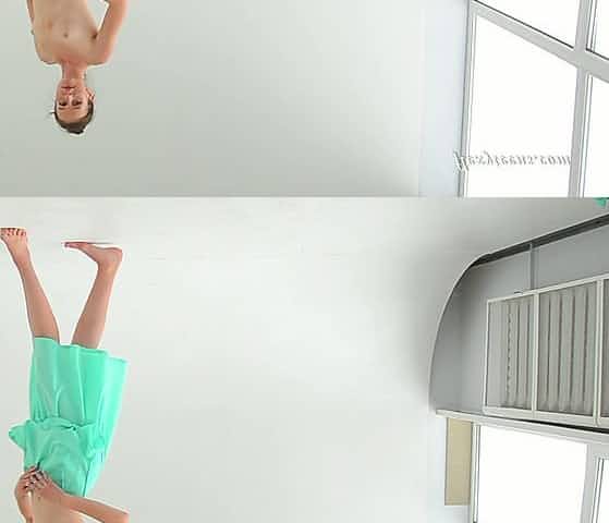 Russian gymnast Alla Sinichka gets naked and shows off yummy bald pussy