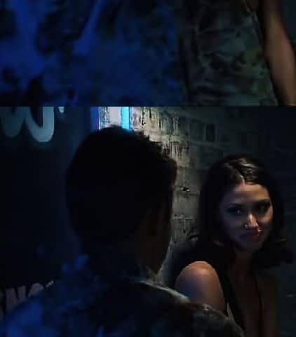 Mia Kirshner dancing for a guy at a strip club, wearing a