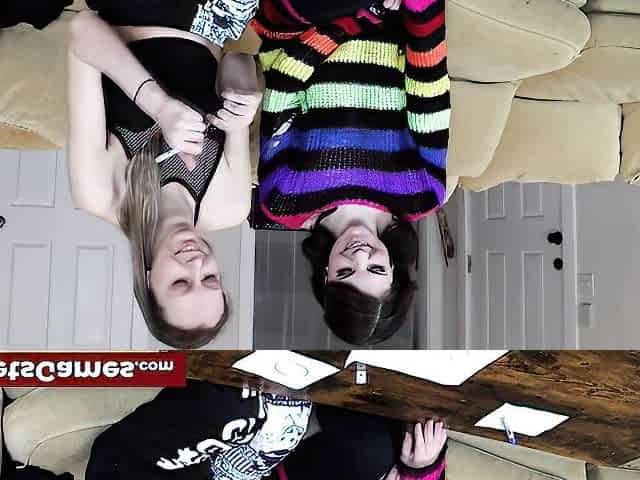 Athena and Valentina play Undress Simon, a sultry lesbo game