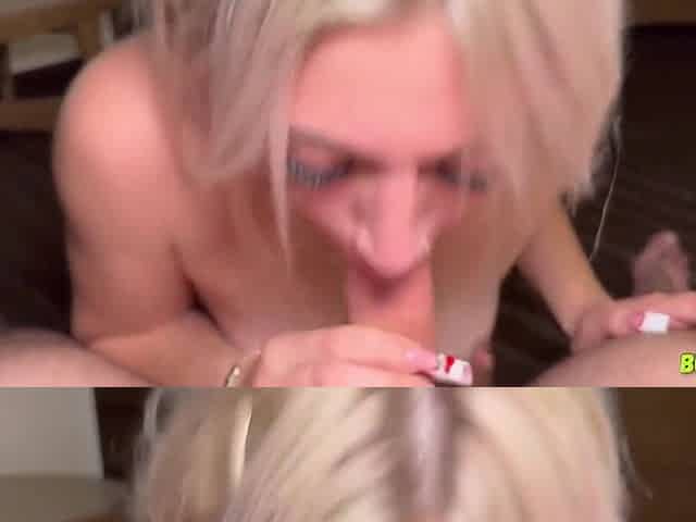 Lengthy Legs Golden-haired Amanda Blow Unfathomable Suck Jock on Knees