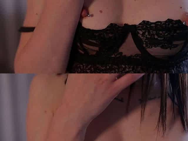 Sweet babe strokes her pierced nipples