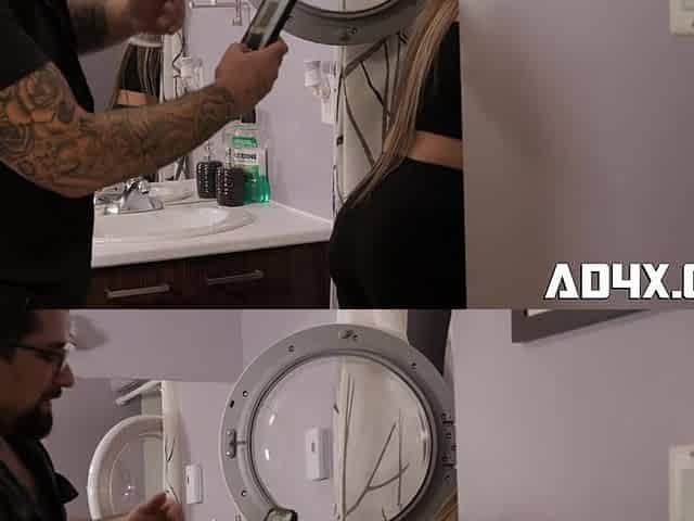 Seductive chick stuck in the sink fucked by her BF on cam