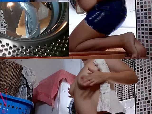 Housewife fucked in the washing machine. MIX PART 1