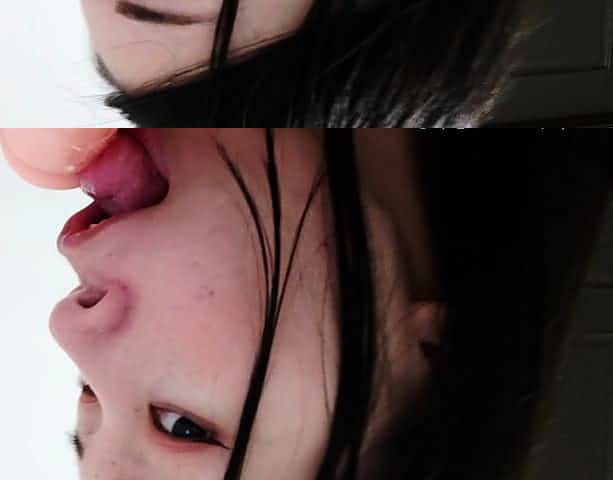 Close up with japanese getting mouth jizzed