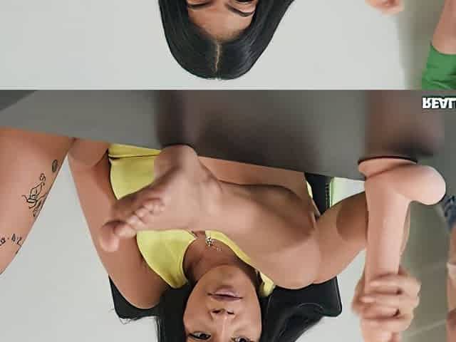 Stupid stepsister takes cock into her own ass