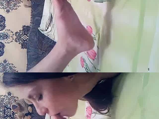 Amateur submissive hotwife enjoy worship master's foot