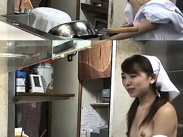 Subtitled nudist Japanese maid dinner time blowjobs