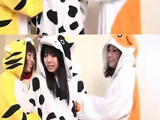 Subtitled Japanese group cosplay wardrobe malfunction