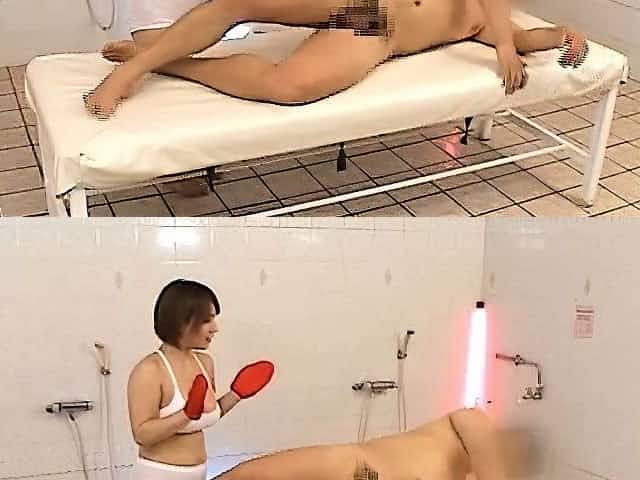 Subtitled CFNM Japanese sauna lady duo penis cleaning