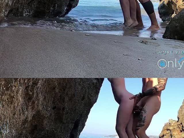 Risky amateur sex on a nudist Greek beach