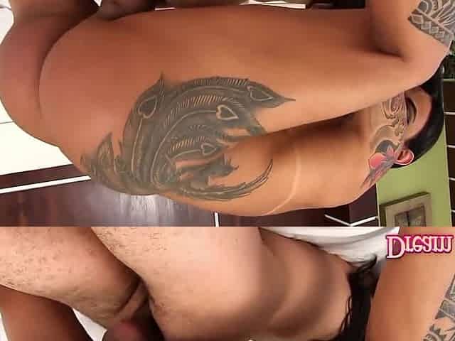 Rosy Pinheiro In Inked Tranny Slut Sucks A Guys Cock And Pummels His Ass