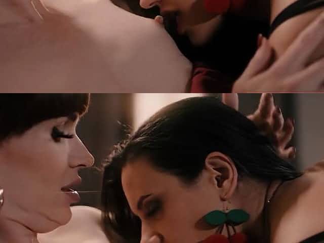 Sultry tgirls Nina and River exhibit a shocking butt fuck session