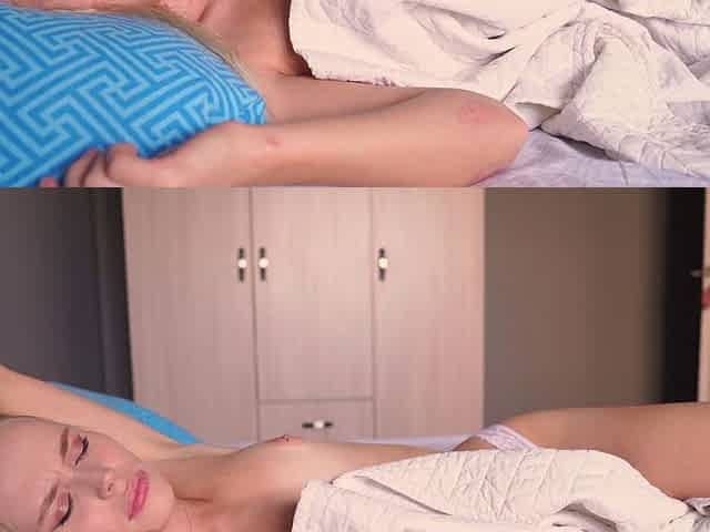 Day 19 - Stepmother jerks off in her stepsons room and shares a bed with cum in her pussy