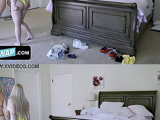 Blonde Babes In Swimwear Get Surprised By Their StepBrothers And Form A Hot Foursome In The Bedroom