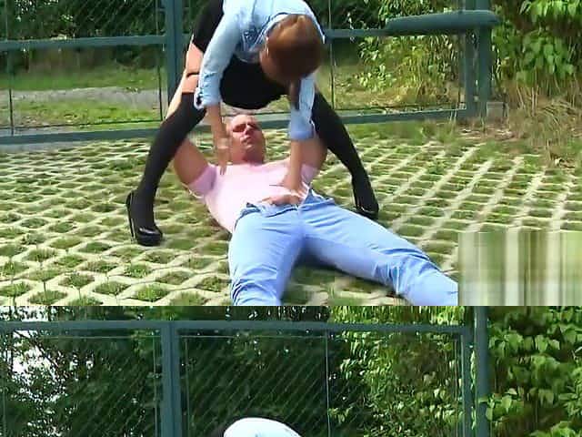 Clothed Brunette Gets Surprise Hardcore Anal Creampie