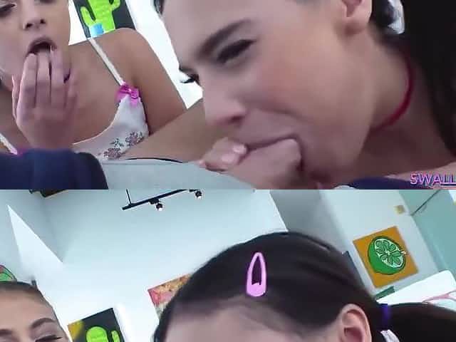 Teen cutie swallowing spunk