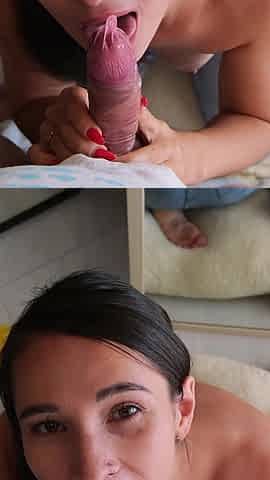 Deep and Passionate Blowjob with Cum Eating Condom