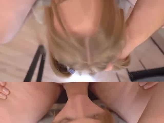 White cutie sucks schlong like a pro and swallows the load