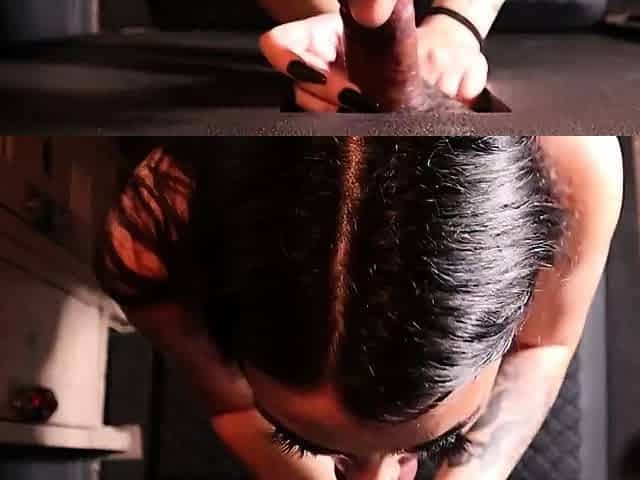 Young latina brunette rough sucks and swallows her boyfriend s cock with passion and love