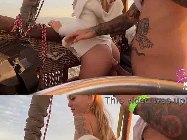 Ardent sunrise sex (this babe swallows) over pyramids in an air balloon