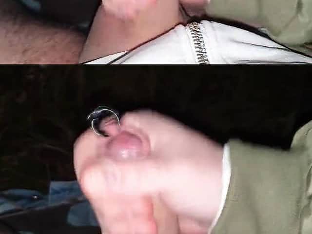 Jerking Off my pierced penis in the woods + jizz flow with groan