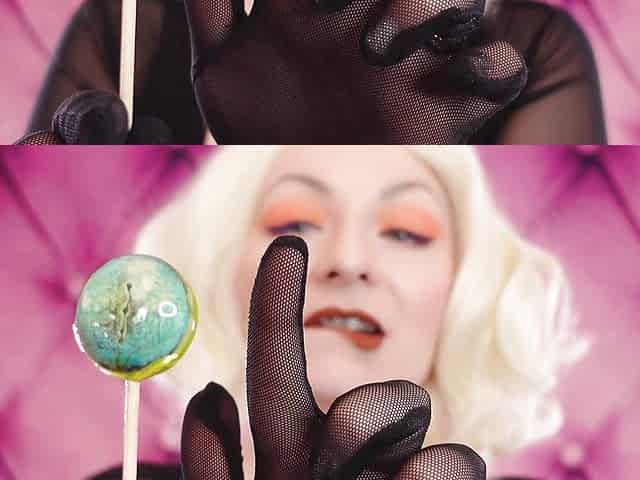 "ASMR video: lipstick, mesh gloves and lollipop (Arya Grander)"