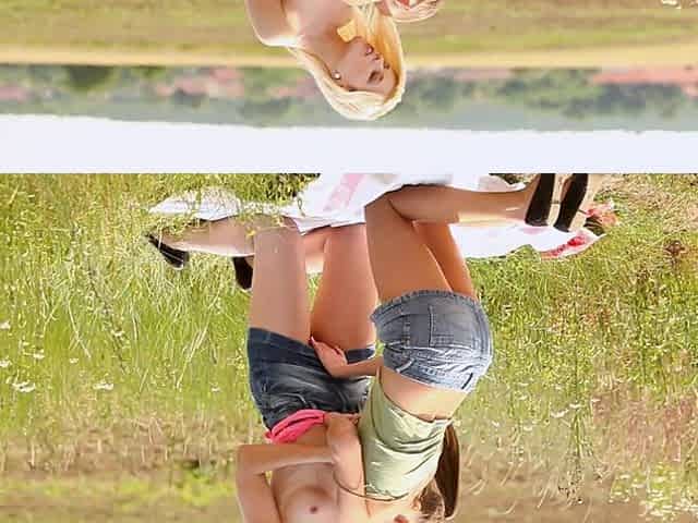Sweet Eliska and Sweet Cat pleasure each other in a local field