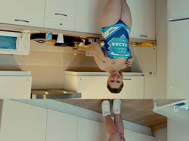 Kinky man licks sweet pussy of his hot blond haired girlie at kitchen