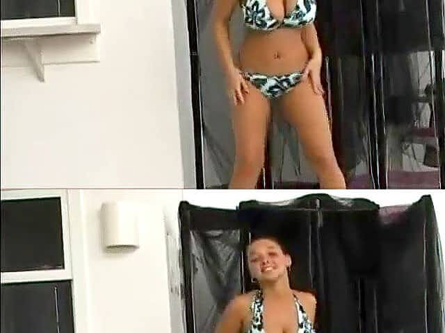 Girls in swim suits flashing tits for cash