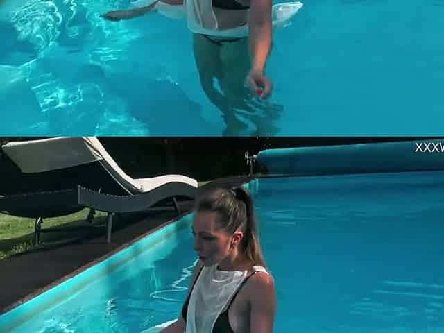 With Christina in watch thru swimsuits in a mini pool