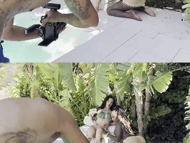 Sexy Bubble-assed Babe Gets Spit-roasted By the Swimming Pool In Hot MMF 3-some