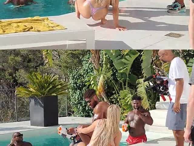 I get playful in a public pool whilst the householder is looking on me in the cameras