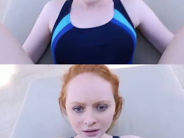 Redhead in a sexy swimsuit craves a joyful fucking