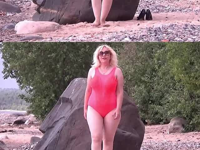 58-year-old Latina Wife Shows off in Swimsuit on the Beach