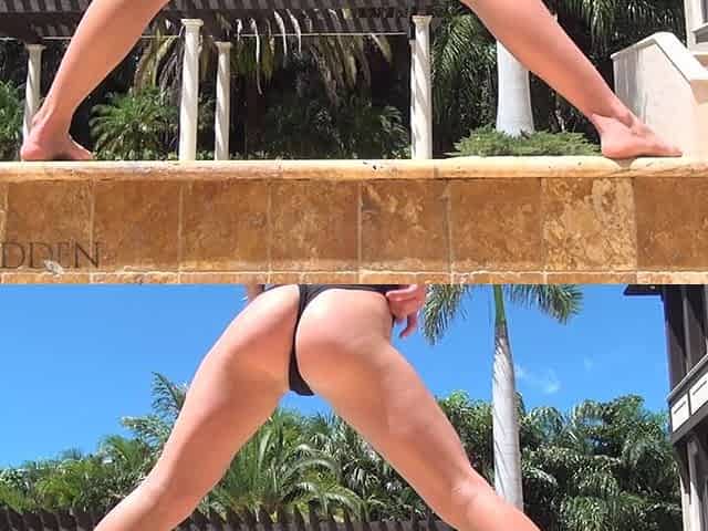 Aurora Willows making her legs toned in a sizzling red swimsuit