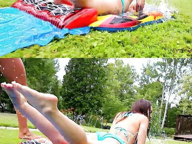 Lezzie BFF - two Bikini Sweethearts Play with Super Soaker and Eat Cunt
