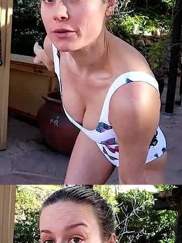 Brie Larson cleavage in white swimsuit