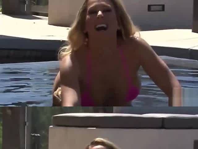 BBW takes a shower after a swim in the pool