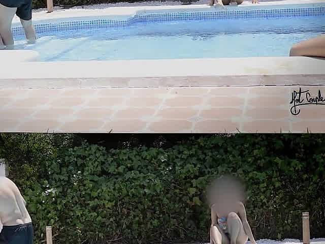 Having enjoyment in a pool of a swinger club!!